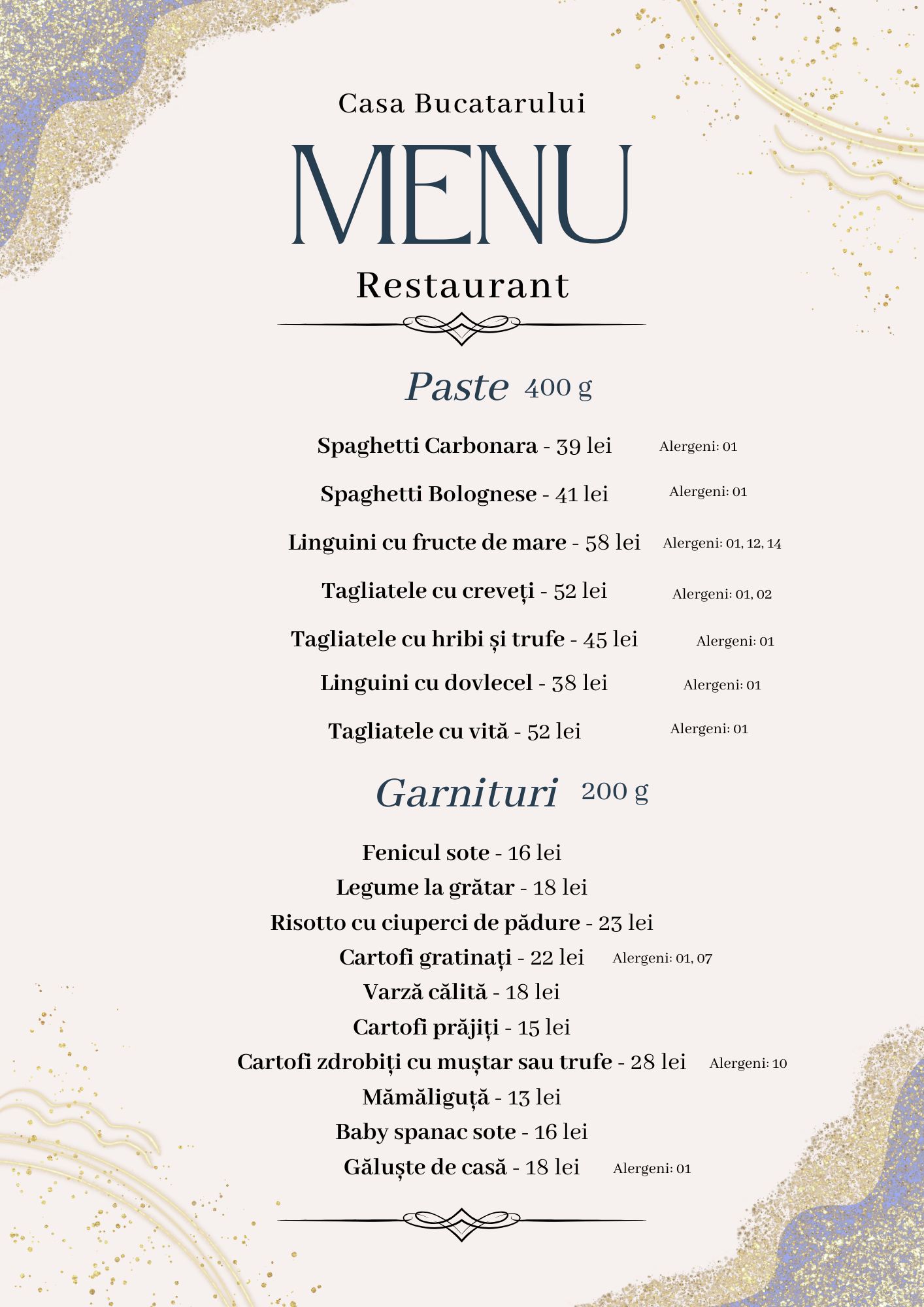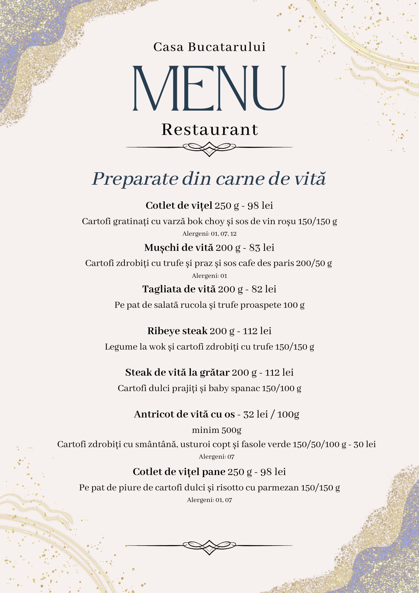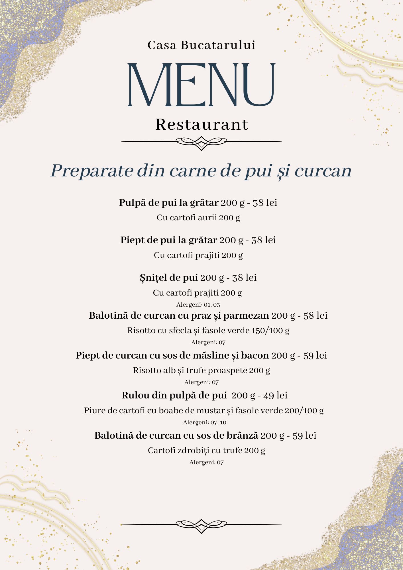 Meniul este inspirat din rețetele vechi, păstrate cu sfințenie din generație în generație, dar și din bucătăria occidentală, pentru a oferi o varietate care să mulțumească toți oaspeții. Folosim ingrediente locale și de sezon, iar fiecare fel de mâncare este pregătit ca acasă – simplu, gustos și cu mult suflet.